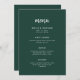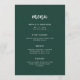 Esta elegante y minimalista tarjeta de menú boda cuenta con una tipografía de escritura moderna y un texto limpio y sans serif para un diseño sencillo y elegante de color verde esmeralda y blanco que le encantará.