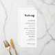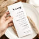 Este elegante menú de boda con texto personalizado y letra caprichosa sería un complemento maravilloso para tu fiesta. Cambie fácilmente el texto haciendo clic en la opción "personalizar esta plantilla".