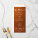 Siga la tendencia otoñal de tonos tierra con nuestro naranja quemado a la carta de bodas en otoño con gradiente marrón. Tipografía blanca simple sobre un fondo rústico para un aspecto minimalista. Tonos bohemios que recuerdan a la arcilla de terracota resaltan su elegante caligrafía en este moderno menú de la cena a la moda.