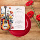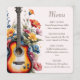 Agregue un toque armonioso a sus mesas de recepción con este menú bellamente diseñado, creado para una boda con un tema de música romántica. La ilustración de la boda de la guitarra audaz se combina con acentos florales elegantes y modernos de acuarela, mezclando el carácter rústico del país de los conciertos musicales con el encanto suave de una boda de verano en un prado de flores silvestres. Colocado sobre un fondo natural de marfil champán ecru, el diseño se siente refinado y equilibrado, perfecto para una boda de un músico guitarrista con un ambiente de boda de jardín de cottage botánico en primavera.