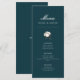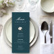 Bienvenido a nuestra tarjeta de menú elegante verde de algodón moderno y hermosa para bodas, un complemento encantador para la celebración de su boda como novia y novio. Con su fondo verde azulado y texto blanco crujiente, esta tarjeta de menú emana elegancia y sofisticación, lo que la convierte en la elección perfecta para su día especial.