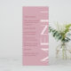 Hermoso menú rosa burdeos monocromático con gran tipografía.