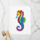 Arco de arcoiris, caballito de mar poligonal sobre fondo blanco. Tatuaje brillante.