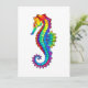 Arco de arcoiris, caballito de mar poligonal sobre fondo blanco. Tatuaje brillante.