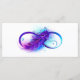 Símbolo infinito con una hermosa pluma pintada de color violeta y azul brillante sobre fondo blanco.