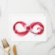 Símbolo infinito de flujo continuo de vino tinto vertiendo en vidrio de vidrio sobre fondo blanco.