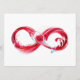 Símbolo infinito de flujo continuo de vino tinto vertiendo en vidrio de vidrio sobre fondo blanco.