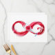 Símbolo infinito de flujo continuo de vino tinto vertiendo en vidrio de vidrio sobre fondo blanco.