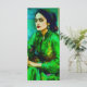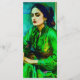 Retrato generado por IA de una mujer introspectiva con un vestido verde