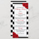 La moderna colección de bodas de lujo de moda cuenta con un fondo clásico de rayas blancas y negras, acentuado por unas bonitas rosas rojas rubíes y un falso marco de Relieve metalizado plateado. Estas tarjetas de menú son fáciles de personalizar y serán el accesorio perfecto para cualquier boda, ducha de novia, fiesta de cumpleaños, celebración de compromiso o cualquier otra ocasión especial.