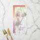 Lesbian wedding menu for two brides featuring the lesbian pride flag gradient—soft pink blending to warm orange—with photo. Displays your wedding photo with menu sections for appetizers, mains, and desserts. The gradient background highlights the entire menu and ties in beautifully with the rest of the collection, creating a cohesive look throughout your wedding. Your names and wedding date appear in elegant script. Perfect for two brides who want to present their reception menu with style while reflecting their love and pride. All text elements are fully editable and ready to personalize with your menu selections. For customization support, please email: remidevandesigns@gmail.com LoveOutLoudStudio©.