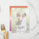 Lesbian wedding menu for two brides featuring the lesbian pride flag gradient—soft pink blending to warm orange—with photo. Displays your wedding photo with menu sections for appetizers, mains, and desserts. The gradient background highlights the entire menu and ties in beautifully with the rest of the collection, creating a cohesive look throughout your wedding. Your names and wedding date appear in elegant script. Perfect for two brides who want to present their reception menu with style while reflecting their love and pride. All text elements are fully editable and ready to personalize with your menu selections. For customization support, please email: remidevandesigns@gmail.com LoveOutLoudStudio©.