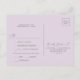 Este menú rústico de lilas RSVP postal es perfecto para un boda de primavera o verano. El romántico y elegante diseño floral presenta flores silvestres de lila morada con acuarelas y un ambiente rústico y acogedor. Esta tarjeta postal de respuesta boda le pregunta a los clientes qué comida desean en su recepción.