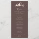 La carta de la cena es clara y rústica, ideal para un boda. El diseño presenta una idílica montaña color beige acuático. Este menú se puede utilizar para la recepción de bodas, la cena de ensayo, la ducha de novia o cualquier otro evento.