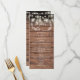 Con luces de cuerda bonitas y guirnaldas florales rústicas ilustradas a mano, personalice este menú elegante con la información del menú de su día especial de boda en un fondo de paneles de madera. Diseñado por Thisisnotme©