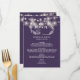 Con luces de cadena bonitas y guirnaldas florales rústicas ilustraciones hechas a mano, personalice este menú morado elegante con la información del menú de su día especial de boda. Diseñado por Thisisnotme©