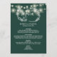 Con hermosas luces de cadena y guirnaldas florales rústicas ilustraciones hechas a mano, personalice este elegante menú verde esmeralda con la información de su menú del día especial de la boda. Diseñado por Thisisnotme©