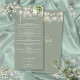 Este elegante menú de boda con luces de cadena de flores verdes salvia puede ser personalizado con su información en tipografía chic con sus iniciales de monograma en el reverso. Diseñado por Thisisnotme©