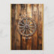 Fondo de madera rústica campestre con luces de frasco de albañil colgando de luces de cuerda, rueda de vagón de madera vieja y genial con lazo de arpillera y borde de cuerda occidental vieja.
