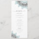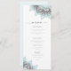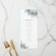 Un patrón de mandala de encaje en un gradiente de azul de huevo de ladin suave y gris cálido junto con el fluido texto del guión le dan a esta elegante suite nupcial su atractivo lujoso. El menú boda que se muestra aquí con mandalas de esquina en suave color azul huevo de robin, permite editar fácilmente los detalles de su menú de recepción utilizando la plantilla proporcionada. Busque ID968 para ver todas las piezas coincidentes en este hermoso conjunto de bodas.