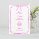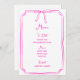 Esta elegante plantilla de menú, de estilo manuscrito, presenta un diseño clásico, dibujado a mano, con un llamativo ilustracion de arco en la parte superior. Se presenta en un divertido esquema de color rosa y blanco, perfecto para marcar el tono de una celebración única y femenina.