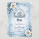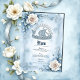 Marco floral con Rosas y diseño celta. La imagen presenta un delicado marco floral con una estética suave y onírica. Las rosas blancas con centros beige sutiles y las hojas verde-azul mudas adornan las esquinas superior izquierda y inferior derecha. El marco en sí está construido con un diseño de inspiración celta y azul glacial. Un patrón de nudo celta circular débil es visible en el fondo.