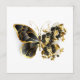 Mariposa de flores de oro con orquídea de joyería negra, decorada con hojas de oro sobre fondo blanco.