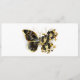 Mariposa de flores de oro con orquídea de joyería negra, decorada con hojas de oro sobre fondo blanco.