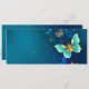 Oro volador, mariposa de joyas sobre fondo textural azul. Diseño con mariposas.
