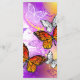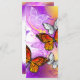 Naranja, mariposas monarcas detalladas sobre la luz, púrpura, pintoresco fondo pintado.