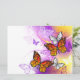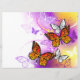 Naranja, mariposas monarcas detalladas sobre la luz, púrpura, pintoresco fondo pintado.