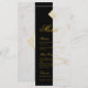 Este elegante menú, recomendado para una boda, es mitad mármol blanco y mitad negro. En la parte superior, hay un monograma de 2 iniciales caligráficas dentro de un marco cuadrado dorado falso, que une las dos mitades. Las iniciales, el título "Menú" y los subtítulos están escritos en una elegante letra caligráfica dorada, el contenido en letras doradas más pequeñas.