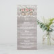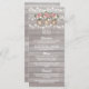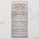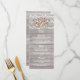 Elegante menú rústico con un fondo rústico de madera clara gris, luces de cuerdas, tres frascos rosados de albañil de rosa con rúcula envueltos a su alrededor, iniciales impresas en las tarros de mermelada y frases blancas de moda.