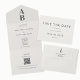 Perfect for modern civil weddings and elegant contemporary receptions, this menu presents your dinner selections with clarity, balance, and understated sophistication. The structured design ensures a calm, elevated look without unnecessary decoration.