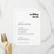 Menú de boda simple y elegante en un estilo de diseño minimalista moderno con tipografía retro en clásico blanco y negro escrito en un estilo informal y casual. El texto se puede personalizar fácilmente para un diseño único y original para tu día especial. Si necesitas ayuda para personalizar este producto, por favor contáctame usando el botón de mensaje abajo y estaré encantado de ayudarte.