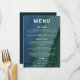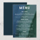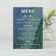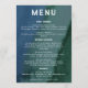 Elementos: fondo de lavado de acuarela abstracta. Los nombres y detalles aparecen en fuentes modernas sans serif. La parte trasera incluye foto y código QR de RSVP. Colores: azul, verde, esmeralda, océano, verde mar, azul marino, azul real, azul celeste. Temas: moderno, minimalista, contemporáneo, tonos de joya. Colección: Colección de Bodas de Fotos Minimalista Moderna Azul Teal. Tipo de producto: Menú