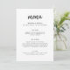 Menú de boda sencillo y elegante en un estilo de diseño minimalista moderno con una tipografía de letra cursiva natural elegante en clásico negro y blanco, con una fuente de letra manuscrita informal. El texto se puede personalizar fácilmente para un diseño único para su día especial. Si necesita ayuda para personalizar este producto, por favor contácteme usando el botón de mensaje abajo y estaré encantado de ayudar.