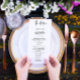 Diseñada para complementar cualquier temática o decoración boda, esta carta presenta un diseño limpio y minimalista adornado con tipografía clásica de guijarros, para darle un toque de refinamiento.