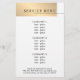 Elegante diseño de plantilla de menú de servicio de personalizable completo para profesionales relacionados con la belleza y el cabello. Diseño sencillo y elegante con franja de oro falsa, línea negra y fondo blanco. Diseño elegante y limpio. Si necesita ayuda para personalizar de este producto, por favor contáctenos.