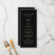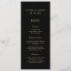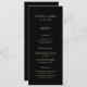 Tarjeta de menú del Boda Mínimo Islámico Musulmán con un fondo negro sólido con un guión oro tradicional romano brillante y negrita brillante escrito. Puedes personalizar los nombres de la pareja feliz, la fecha del evento matrimonial y editar toda la información de comida que está escrita ahí. Moderno. Sencillo. Dorado. Plantilla imprimible. HerLineForDesignStudio de Ayesha.