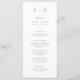 Estas elegantes y modernas tarjetas de menú boda o de menú para la cena presentan un sencillo diseño de texto en blanco y verde sabio que rebosa de estilo minimalista. Añada sus iniciales o su monograma para hacerlas completamente propias.