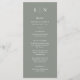 Estas elegantes y modernas tarjetas de menú boda o de menú para la cena presentan un sencillo diseño de texto en blanco y verde sabio que rebosa de estilo minimalista. Añada sus iniciales o su monograma para hacerlas completamente propias.
