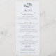Elementos: Motif de montaña de color agua con árboles y nieve. Los elegantes tipos de letra serif se compensan con un borde sencillo pero refinado. Colores: azul, blanco, gris, pizarra, azul polvoriento, blanco nevado, azul real, Temas: simple, elegante, moderno, rústico, boda al aire libre, boda de montaña, únete a nosotros en las montañas, único, campo, apres ski, refugio de montaña. Colección: Elegante colección de Bodas de borde de color blanco gris azul de la montaña. Tipo de producto: Menú