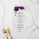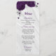 bellas flores reales moradas y hojas grises plateadas elegante menú de bodas.