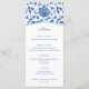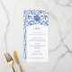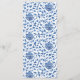 El clásico diseño de la carta presenta un patrón de fondo chinoiserie pintado a mano, azul y blanco, basado en un patrón visto en un jarrón de jengibre vintage.