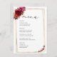 Elegante menú moda rosa rojo burdeos y falso boda dorado con hermosas flores y hojas verdes. Una fusión de elegancia y encanto romántico. Estas hermosas invitaciones están en ricos tonos rosados y rojos. La caligrafía es elegante y moda y se puede personalizar fácilmente. Románticas y modernas invitaciones florales de boda con colores clásicos que nunca salen de su estilo.