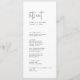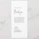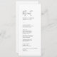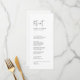 Este moderno menú de moda blanco y negro y boda es perfecto para un boda sencillo. El minimalista diseño boho presenta una tipografía bohemia rústica única y elegante en blanco y negro minimalista. Personalice la tarjeta de la mesa con su menú en la parte delantera y un mensaje de agradecimiento para sus invitados en la parte trasera.