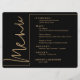 En el menú de la cena, una carta en negro y dorado, te permite elegir entre el menú con letras de moda, perfecto para una recepción nupcial moderna, una cena de boda, un fiesta de aniversario o cualquier otro evento especial con una cena sentada. Fácilmente personalizable con su menú de cena y sus detalles. MÁS colores y tamaños en nuestra colección.