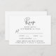 Tarjeta RSVP de boda de moda con "rsvp" en un guión moderno, tipografía simple, opciones personalizadas de entrada de menú y sus nombres y fecha juntos por un corazón en la parte posterior.