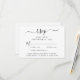 Tarjeta RSVP de boda de moda con "rsvp" en un guión elegante con toques, tipografía simple y elegante, opciones personalizadas de entrada de menú y sus nombres unidos por un corazón en la parte posterior.